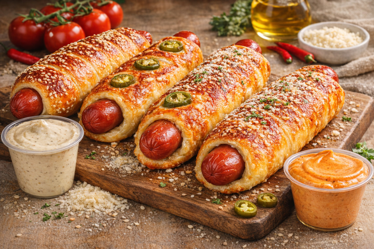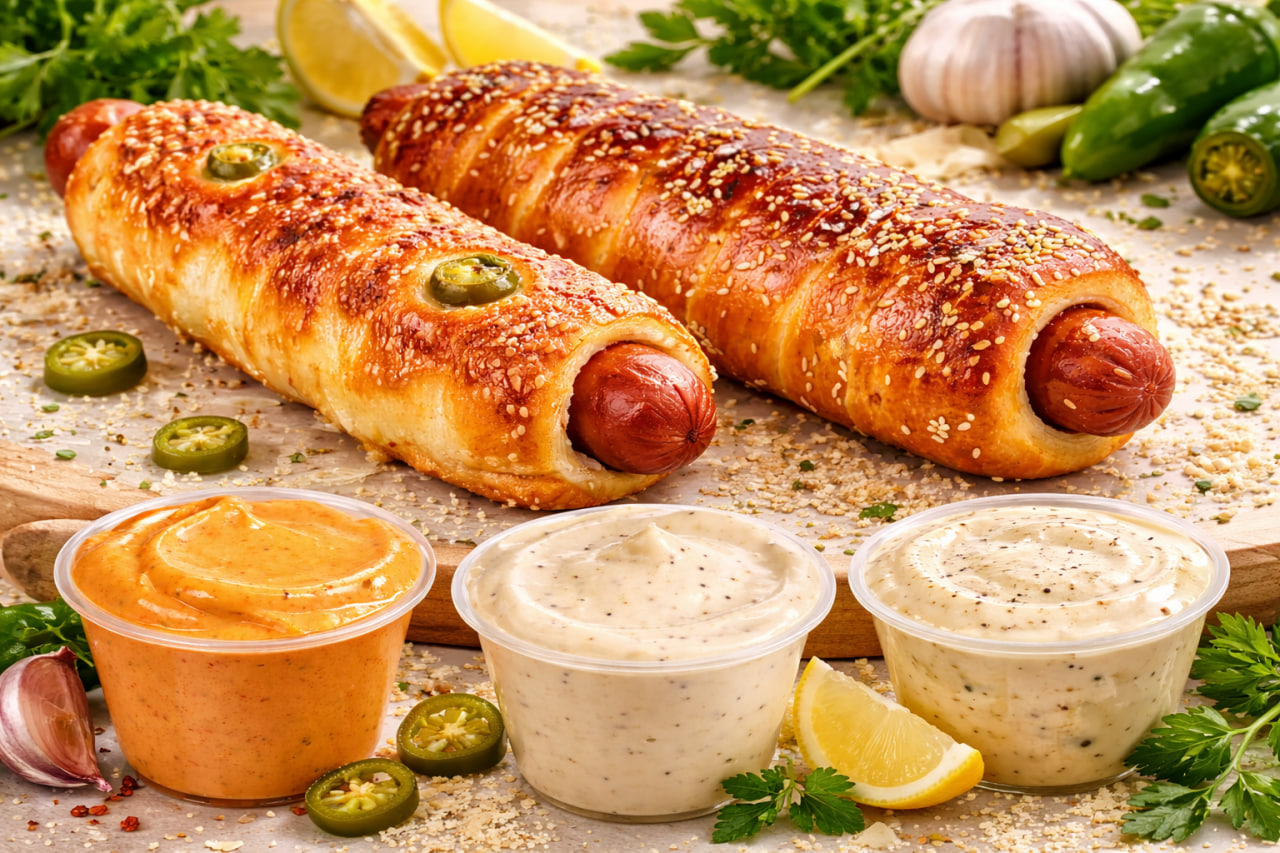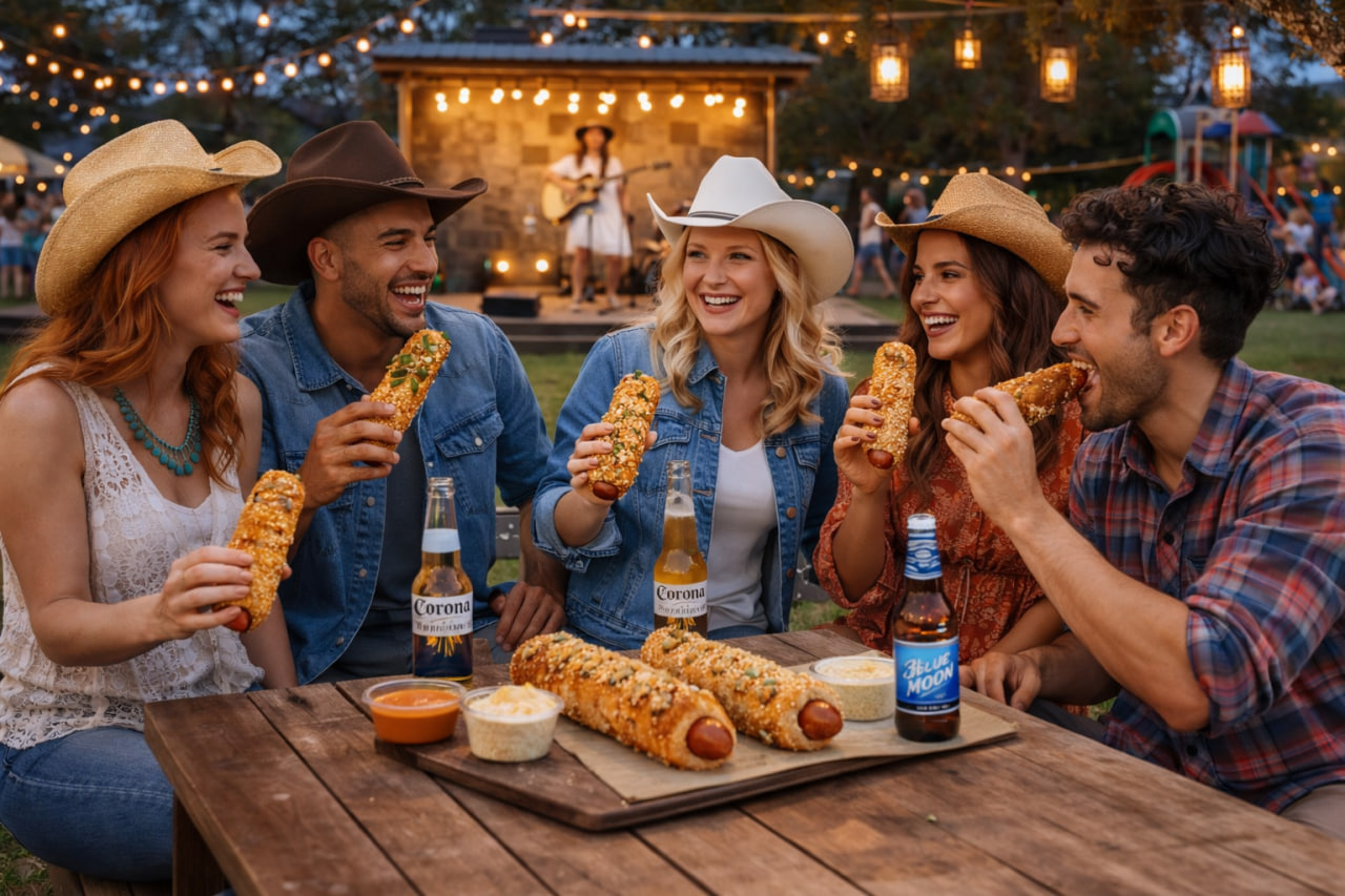 Handmade, freshly baked Chimney Dogs with signature toppings for a memorable event experience.